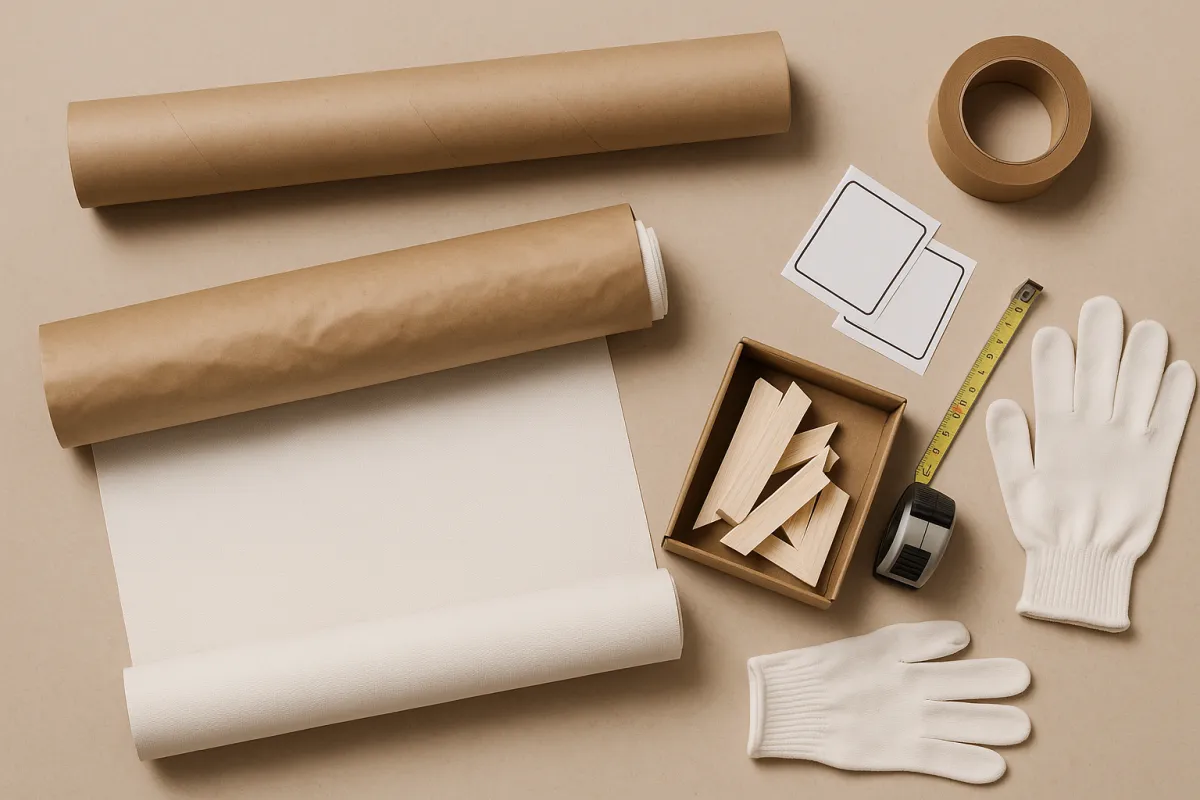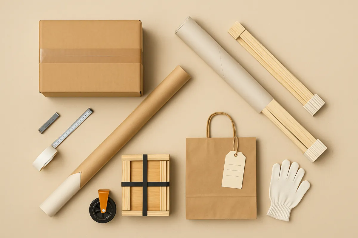 Für Meterware (gerollt auf Kern), Keile, kleine Rahmen/Leistenbündel und Zubehör. Mit Sendungsverfolgung, CO₂-Option und Ablagevereinbarung auf Wunsch.